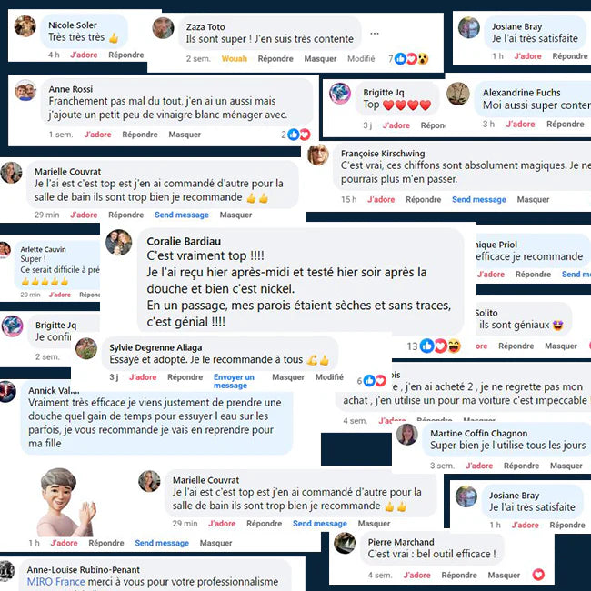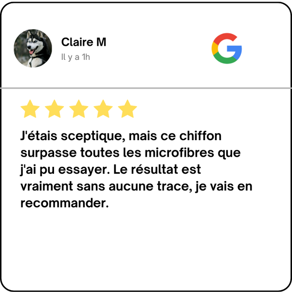 Septembre 2025Fatima M.Acheteur vérifiéIncroyablement efficace !J'étais sceptique, mais ce chiffon surpasse toutes les microfibres que j'ai pu essayer. Le résultat est vraiment sans aucune trace, je vais en recommander.
