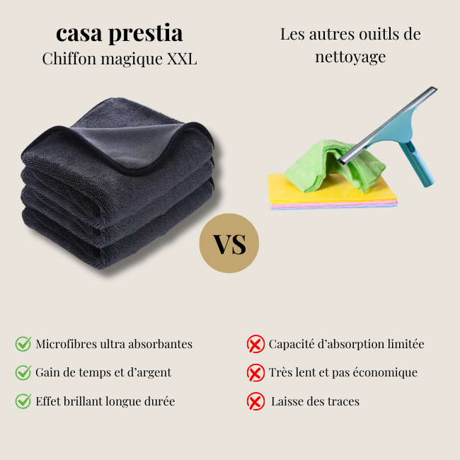 - Absorption Extraordinaire : Le chiffon magique peut absorber jusqu'à 800 ml d'eau, ce qui le rend idéal pour sécher rapidement les surfaces sans laisser de traces. C'est l'outil parfait pour des nettoyages efficaces et rapides.