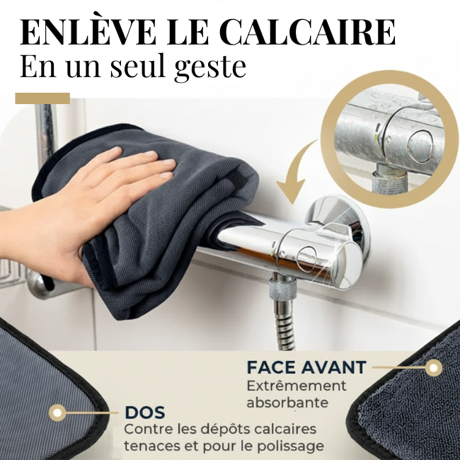 Septembre 2025Marc R.Acheteur vérifiéAdieu le calcaire !Ce chiffon est parfait pour ma paroi de douche. Il absorbe l'eau en un seul passage et ne laisse aucune trace. Un vrai gain de temps.