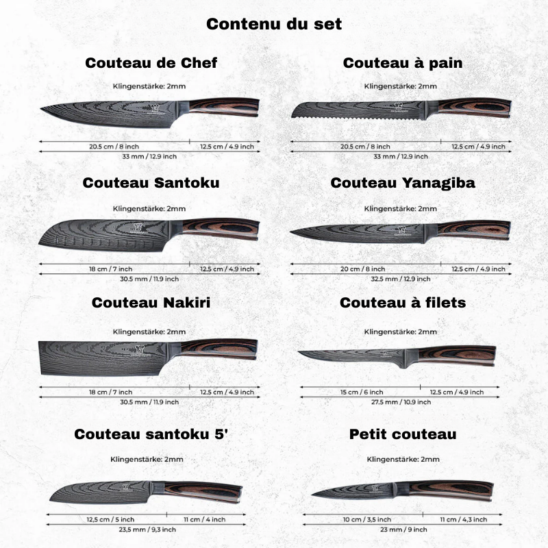 Coffret premium x8 couteaux de chef