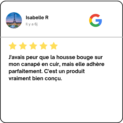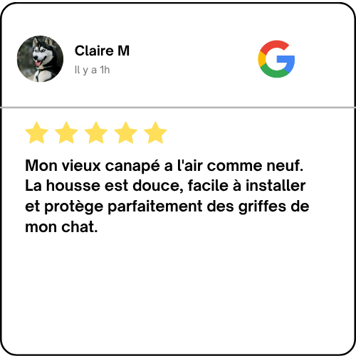 “Installation super simple et le rendu est magnifique. Mon vieux canapé a l'air comme neuf et il est enfin protégé des griffes de mon chat. Je recommande !” ★★★★★ — Laura S.